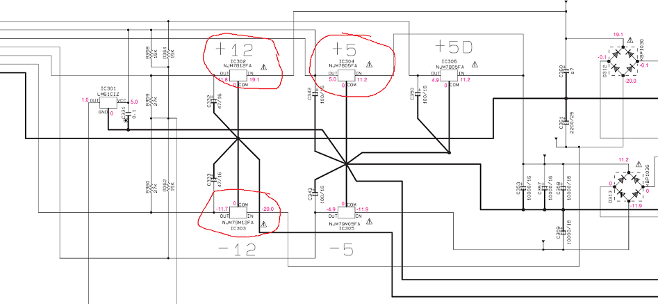 no obvious signs of damage, blown fuses, no scorched marks or any bulging capacitors. Probing through the power board quickly showed