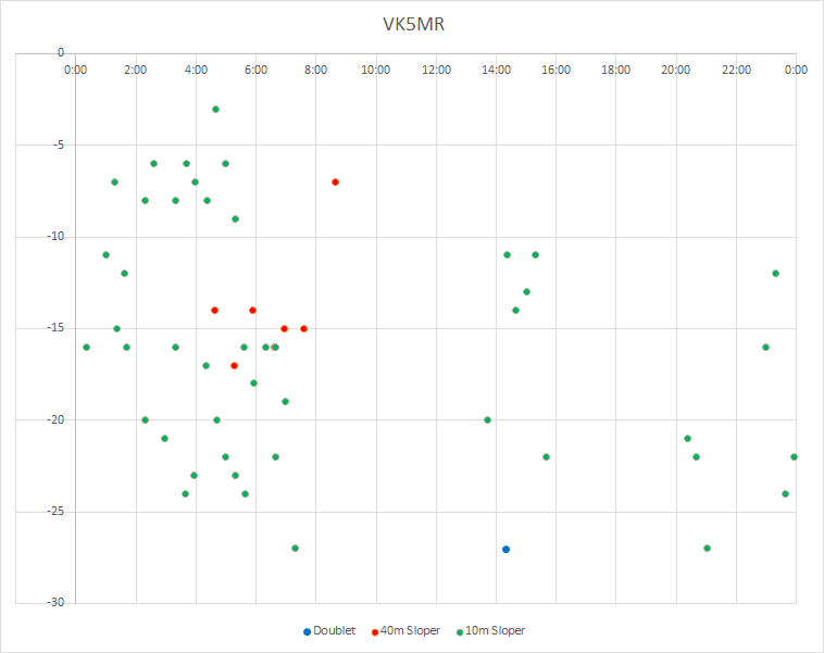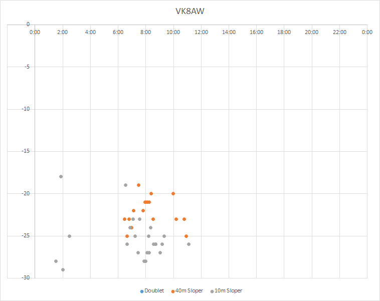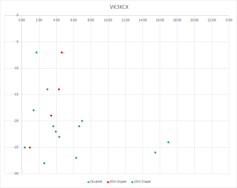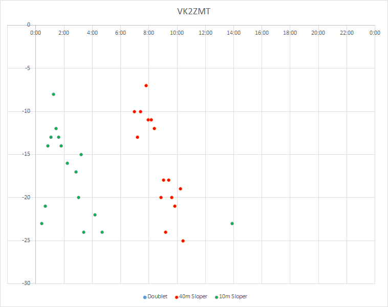 data has been graphed using Excel. Horizontal axis = UTC Time,