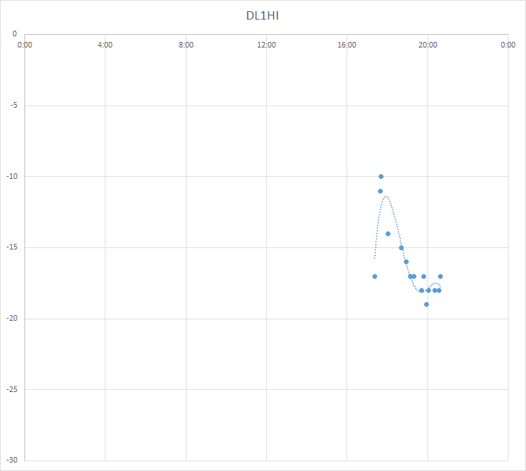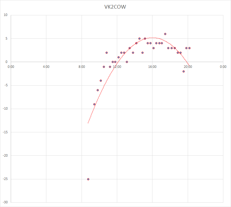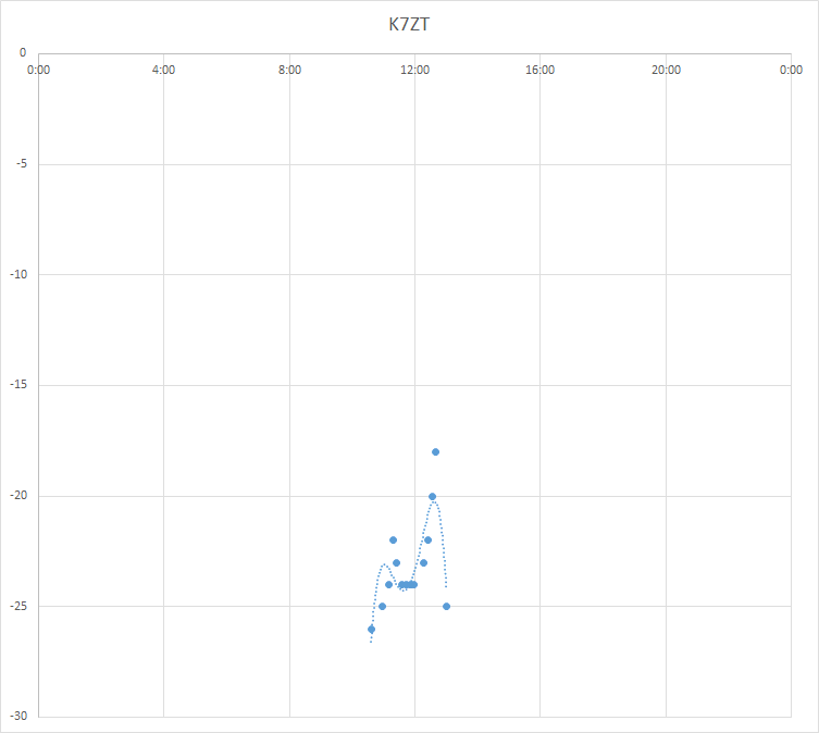 Excel. Horizontal axis = UTC Time, Vertical axis = dB below the