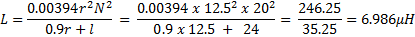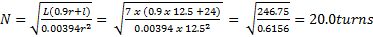 has 20 turns close wound on to a 25mm diameter (12.5mm radius) former and the wire is 1.2mm