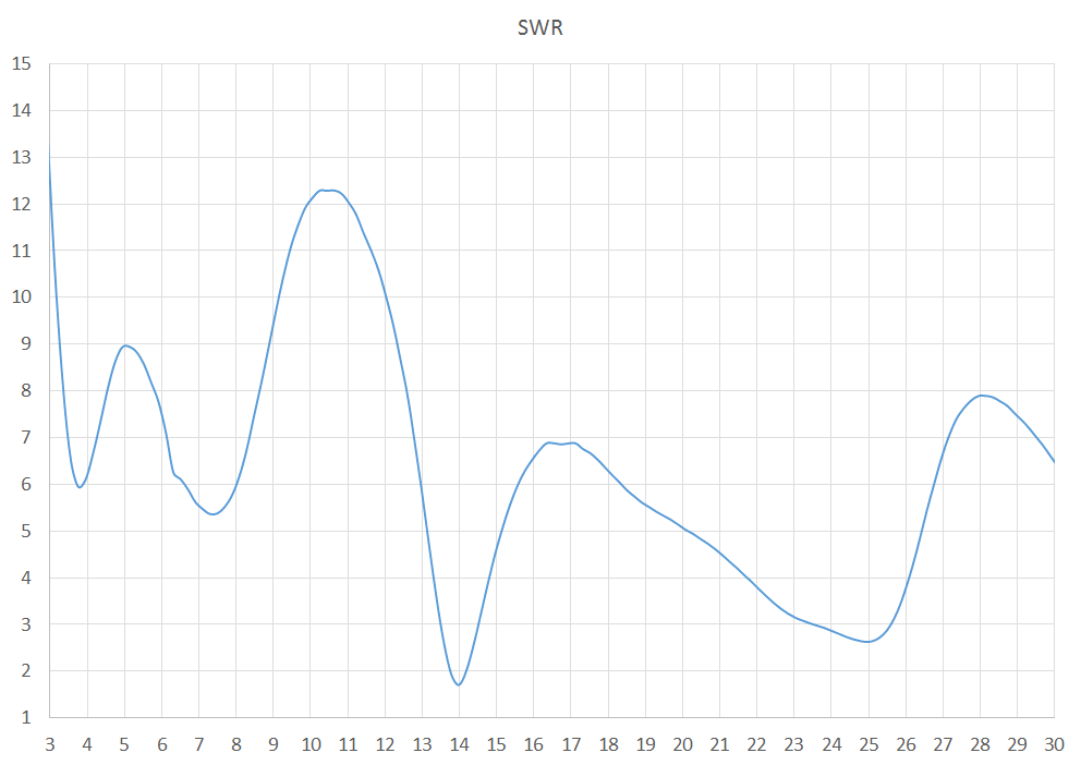 results for VSWR ratios across the HF band for connection at 4:1