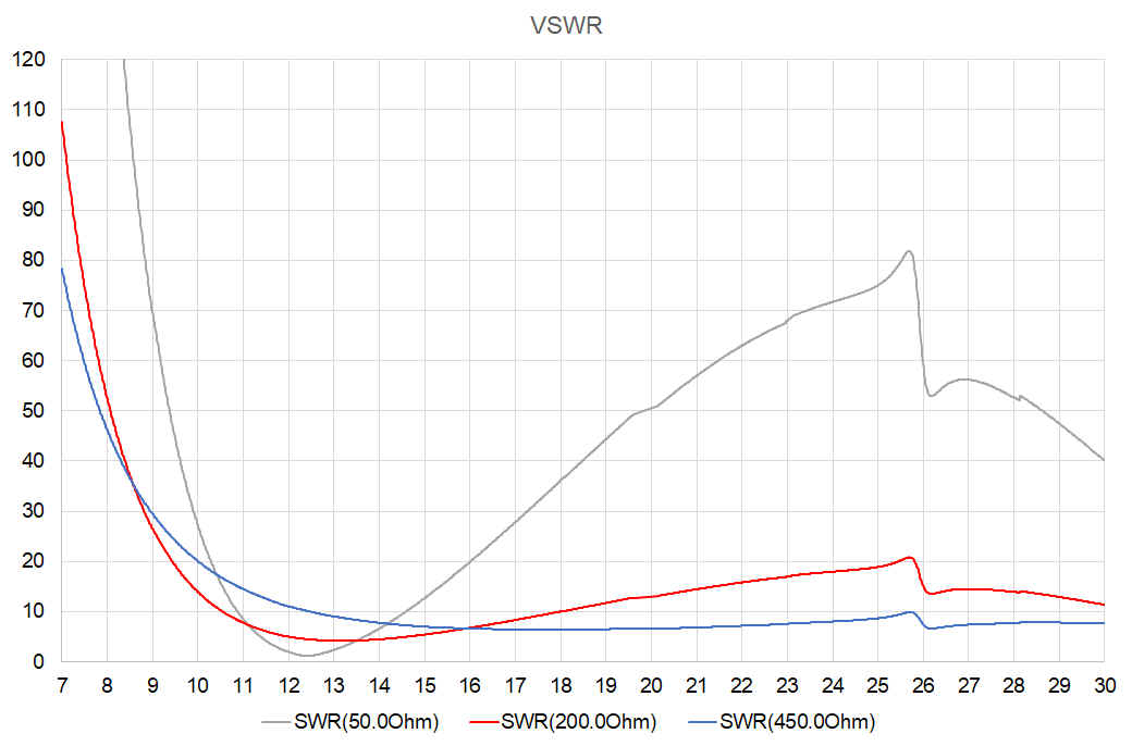 impedance of 200 ohms and by avoiding the high SWR levels for the