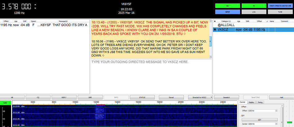 Photo 2 JS8Call screen shot. 80m band contact with VK5CZ.