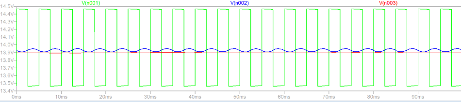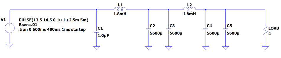 2 Low Pass Filter run in LTSpice, set up with a 14v DC voltage