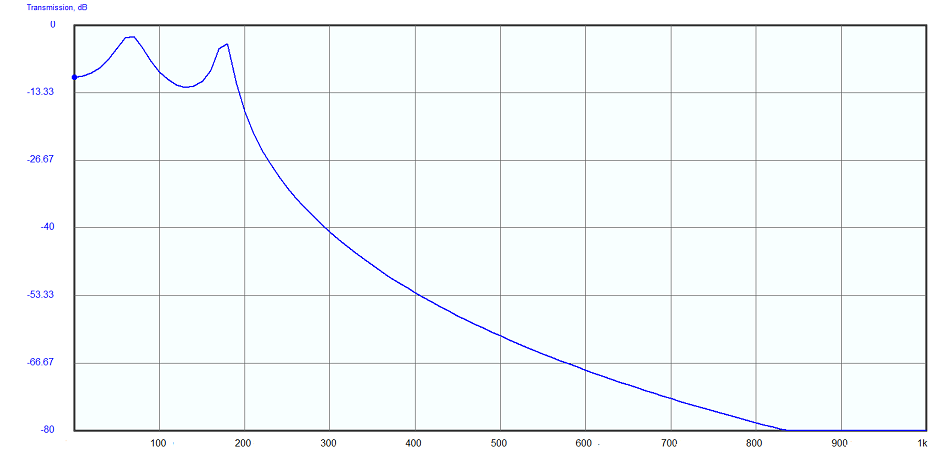 3 Low Pass Filter modelled to show attenuation by frequency with Elsie filter design application.