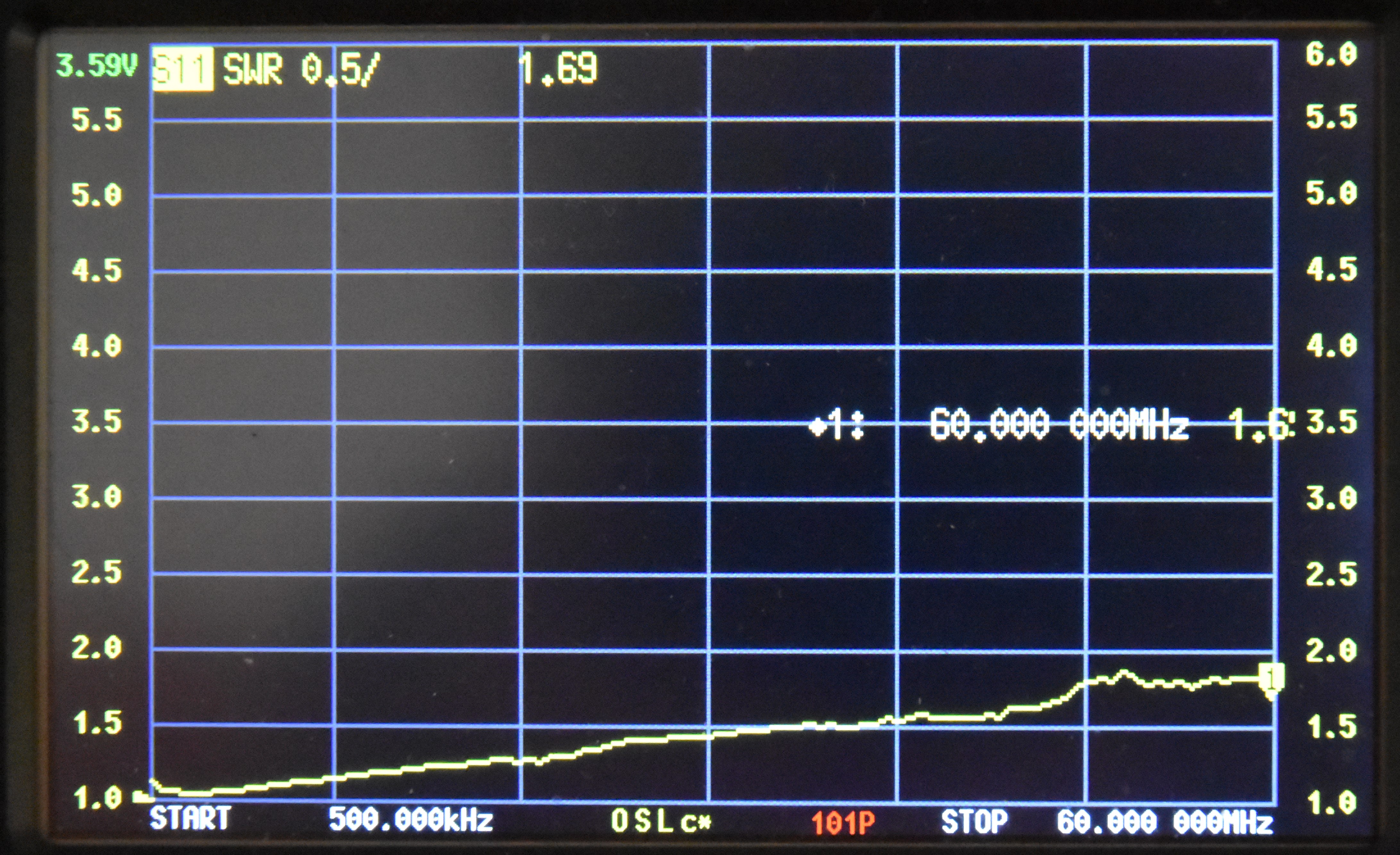 transformation resulting in an ideal SWR of 1:1. This plot shows an SWR ranging from