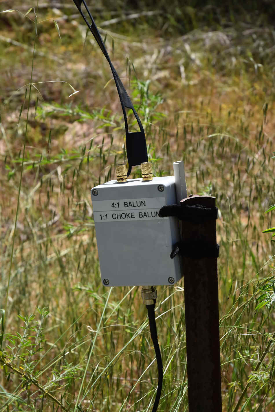 wire feed connection to coax cable with 4:1 Balun and choke balun.