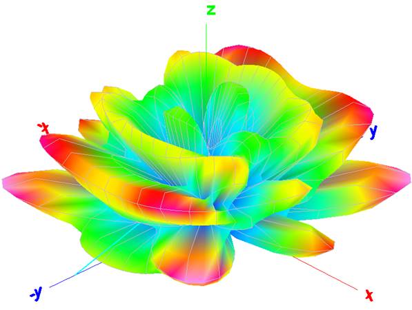 the very complex multi-lobed radiation pattern.