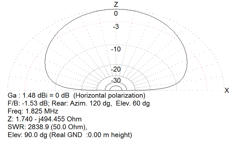 Fig 5 All Band Doublet re-configured to a 'T' Antenna and modelled with MMANA-GAL