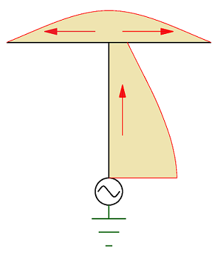 ‘T’ arms act as a capacitance hat increasing RF current in the